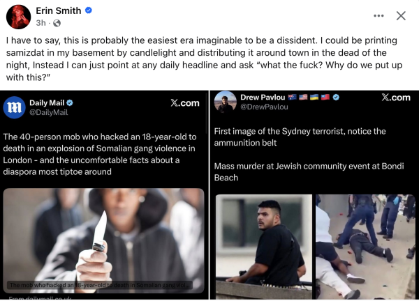 8:14am By Glenn ReynoldsAUSTRALIA HAS BASICALLY PROMOTED THIS: At least 11 killed as terrorist attack targets Jews at Sydney’s Bondi Beach. Related: UPDATE: pic.twitter.com/cdA7qcKca0 — Brucey's Back (@Bruce11390126) December 14, 2025I MISS SOME THINGS ABOUT 1995, BUT NOT THE MEDIA ENVIRONMENT: https://twitter.com/asymmetricinfo